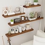 Rustic Floating Shelves, Wooden Floating Shelves for Wall Set of 3, Wall Mounted Dark Wood Shelves for Living Room Bedroom Bathroom Kitchen – Dark Walnut