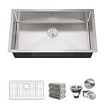 kitchen Sinks 32×18 inch Undermount kitchen sink stainless steel sink 16 Gauge Single Bowl kitchen sinks Set (5 Item Bundle: Sink, Bottom Grid, Drain Assembly, Drain Cap, Kitchen Towel)
