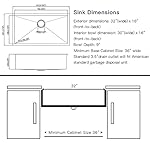 【DIMENSIONS】: 32″ L x 18″ W x 9″ D; INTERIOR DIMENSIONS: 30″L x 16″W x 9″D; MINIMUM CABINET SIZE: 36 Inch. Standard 3.5″ drain openings will fit any garbage disposal unit. X grooves design is easy to drain .