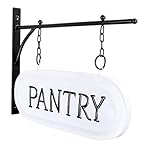 AuldHome Design Metal Hanging Pantry Sign, White Enamelware Iron 2-Sided Rustic Farmhouse Decor