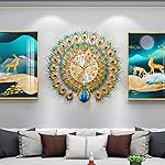 UNIQUE PEACOCK DESIGN:Exquisite Bohemian Style Crystal large wall clock, made from Alloy and Artificial Diamond Perfect for living room and bedroom.