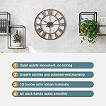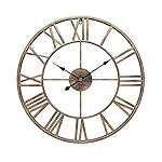 WGWART 24″ Large Roman Numeral Wall Clock, Silent Non Ticking Battery Operated Quartz Round Big Metal Wall Clock for Home Decorative/Loft/Living Room Decor/Farmhouse – Antique Gold