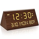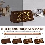 Kogonee Wooden Digital Alarm Clock, 0-100% Dimmer, 2 Alarm Settings, Weekday/Everyday Mode, 9 Mins Snooze, 12/24H, Temperature and Date Display for Office, Travel, Bedroom Alarm Clock (Brown)