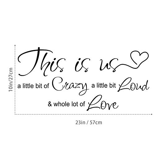 This is Us Crazy Loud Love Wall Decal Vinyl Love Quote Wall Decal Inspirational Family Quote Sticker Art Lettering Saying Home Decoration for Bedroom Living Room Office