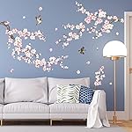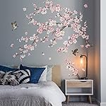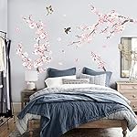 wondever Cherry Blossom Wall Stickers Pink and White Flower Tree Branch Peel and Stick Wall Art Decals for Living Room Bedroom TV Wall