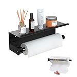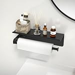 WEST TUNE Paper Towel Holder Wall Mount with Shelf – Paper Towel Holder with Damping Effect,Adhesive or Drilled for Bathroom/Garage/Kitchen(Stainless Steel, Matte Black)