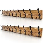SAYONEYES Rustic Coat Rack Wall Mount, 38.6 Inch Long Solid Pine Brown Wood Wall Rack, Coat Hanger Wall Mounted with 10 Heavy Duty Tri Hooks for Hanging Coat, Towels, Hat, Jacket – 2 Pack