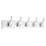 Functional storage and great value make this rail a great choice. Each rail has five tri hooks for increased holding capacity. The Satin Nickel on White finish combination is sure to coordinate with your existing decor, making it perfect for foyers, hallways, and bedrooms. Holds a maximum weight of 35 lbs when mounted to solid wood or studs.