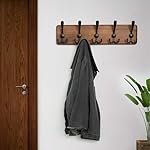 WEBI Coat Rack Wall Mount,Coat Hooks Wall Mounted,16″ Hole to Hole,Wood Coat Hanger Wall,Hook Rack Rail,5 Triple Hooks for Hanging Coats,Jacket,Clothes,Brown