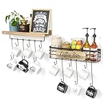 Home Shop Farmhouse Wall Decor Farmhouse Wall Mug Racks Coffee Cup Holder 2 Pack Coffee Bar Shelf with 12 Mug Hooks, Mug Organizer Floating Mug Racks for Wall, Coffee Cup Display Hanger Pods Holder, Farmhouse Coffee Bar Decor Kitchen Accessories