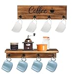 2PC Wall Mount Coffee Mug Holder: LotFancy Coffee Cup Holders are made of high-quality solid wood and elegant bronze metal hooks. Vintage farmhouse style. Gives organization and classic décor touch to your space.