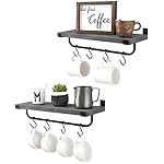 Home Shop Farmhouse Wall Decor Farmhouse Wall Mug Racks Mkono Mug Holder Wall Mounted Coffee Mug Rack Set of 2 Rustic Floating Shelf for Coffee Bar Accessories Wood Tea Cup Hooks Hanger for Organizing Cooking Utensils, Home Kitchen Decor, Grey