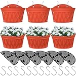 Yungyan 6 Pack Large Wall Hanging Planters 12 Inch Hanging Flower Pot for Railing Fence Plastic Plant Wall Hanging Basket for Indoor Outdoor Railing Balcony Decor Garden Yard (Brick Red)
