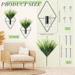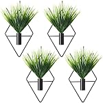 Jexine 4 Pcs Plant Wall Decor Diamond Shape Hanging Planters with Artificial Plants Geometric Wall Decor Metal Hanging Vase Indoor Plants Holder for Living Room Bathroom Home (Aquatic Grass)