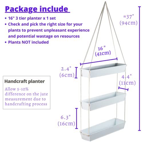 LaLaGreen Hanging Wall Planter – 16 Inch Three Tier Plant Hanger for Succulent Indoor Herb Planter Modern White Boho Metal Wall Plant Holder Decor, Vertical Garden Hanging Planter Shelf Large Outdoor