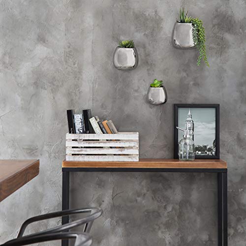 MyGift Set of 3 Contemporary Wall Mounted Metallic Silver Ceramic Plant Vase/Succulent Planter Pots