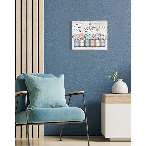 Bible Verse Wall Art: God Says You are Wall Art prints inspiration art, uplifting Bible scripture and encouragement flower elements on sound-absorbing materials, bringing both decorative inspiring art and impressive tranquillity into your space