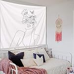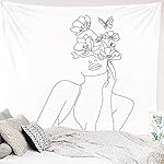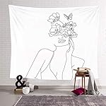 Miytal Art Line Aesthetic Tapestry, Simple Women with Flower Butterfly Wall Hanging, Modern Minimalist Abstract Creative Sketch Wall Décor for Dorm Bedroom Office – 51.2″ x 59.1”