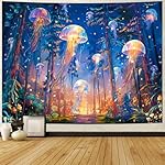 Size: There are 2 Sizes for you to choose, W59″×H51″(150×130cm), W78″×H59(200×150cm)”. This blacklight forest jellyfish tapestry is so gorgeous, make sure you get one.