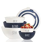 Rae Dunn Mixing Bowls with Lids – 10 Piece Plastic Nesting Bowls Set includes 5 Prep Bowls and 5 Lids