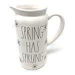 White ceramic vase or pitcher inscribed LL black SPRING HAS SPRUNG.