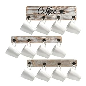 Mug Hooks Cup Holder Wall Mount Coffee Mug Holders with Storage Shelf, Farmhouse Coffee Cu...