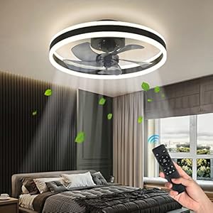 OMYU 20″ Flush Mount Ceiling Fan with Lights, Round Bladeless Ceiling Fan with Remot...